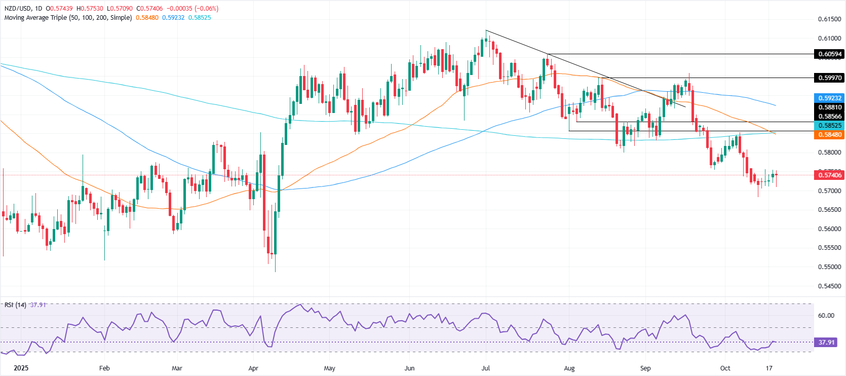 纽元/美元价格预测:在0.5740附近稳定,交易者等待催化剂
