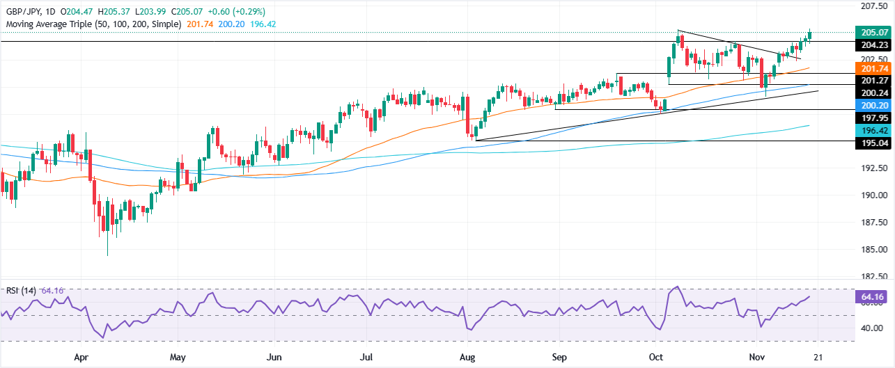 英镑/日圆价格预测:多头掌控,刷新年内高点至205.00以上