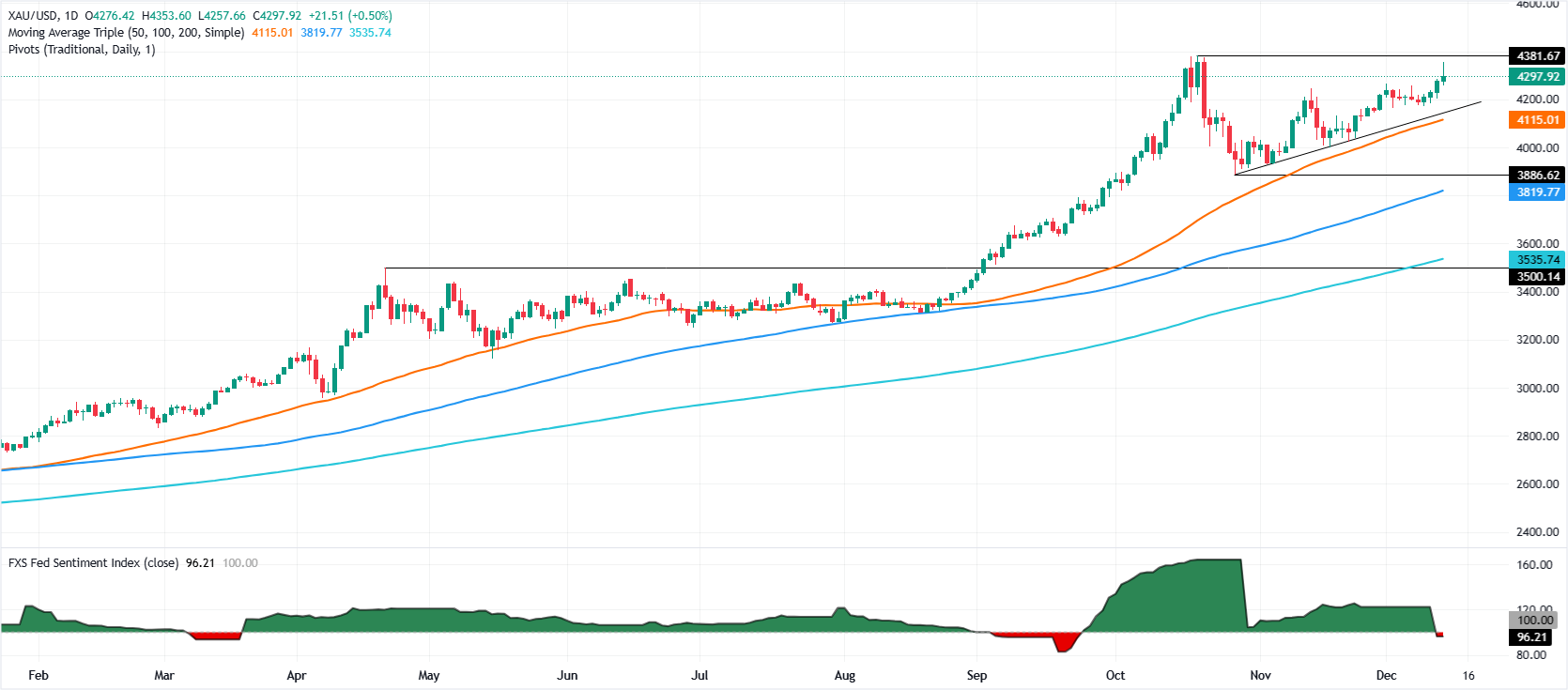 • XAU/USD 从 七周 的4353美元高点回落,交易者在强劲的周涨幅后锁定利润。