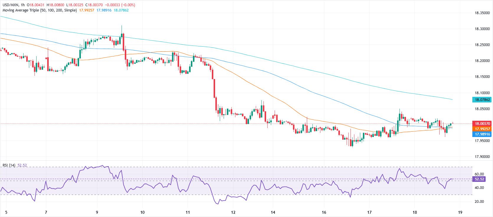 美元/墨西哥比索几乎没有反应,维持在约18.00,基本不变。在这一年中,这一异国货币对已下跌超过12%,与去年的价格走势相呼应。只要保持在18.07以下,进一步下行的可能性仍然存在,投资者关注12月16日触及的年内低点17.92。