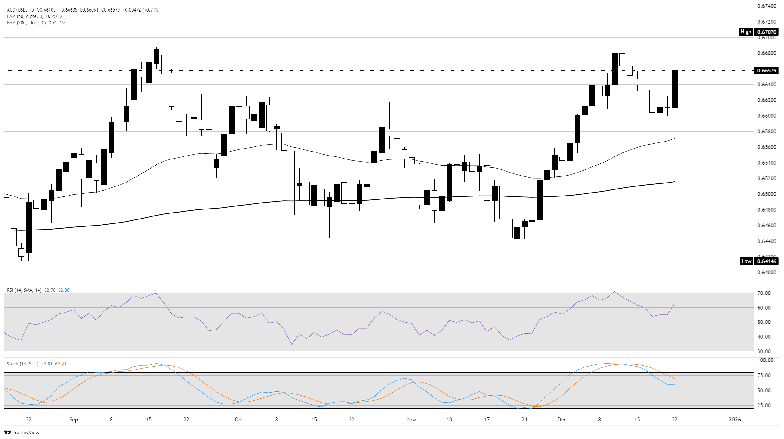 澳元/美元在周一上涨,回升至0.6660区域,此前经历了较长时间的短期下跌。澳大利亚元(AUD)获得了来自广泛市场美元流动的救命稻草,避险货币美元(USD)在假期停业前出现回落。