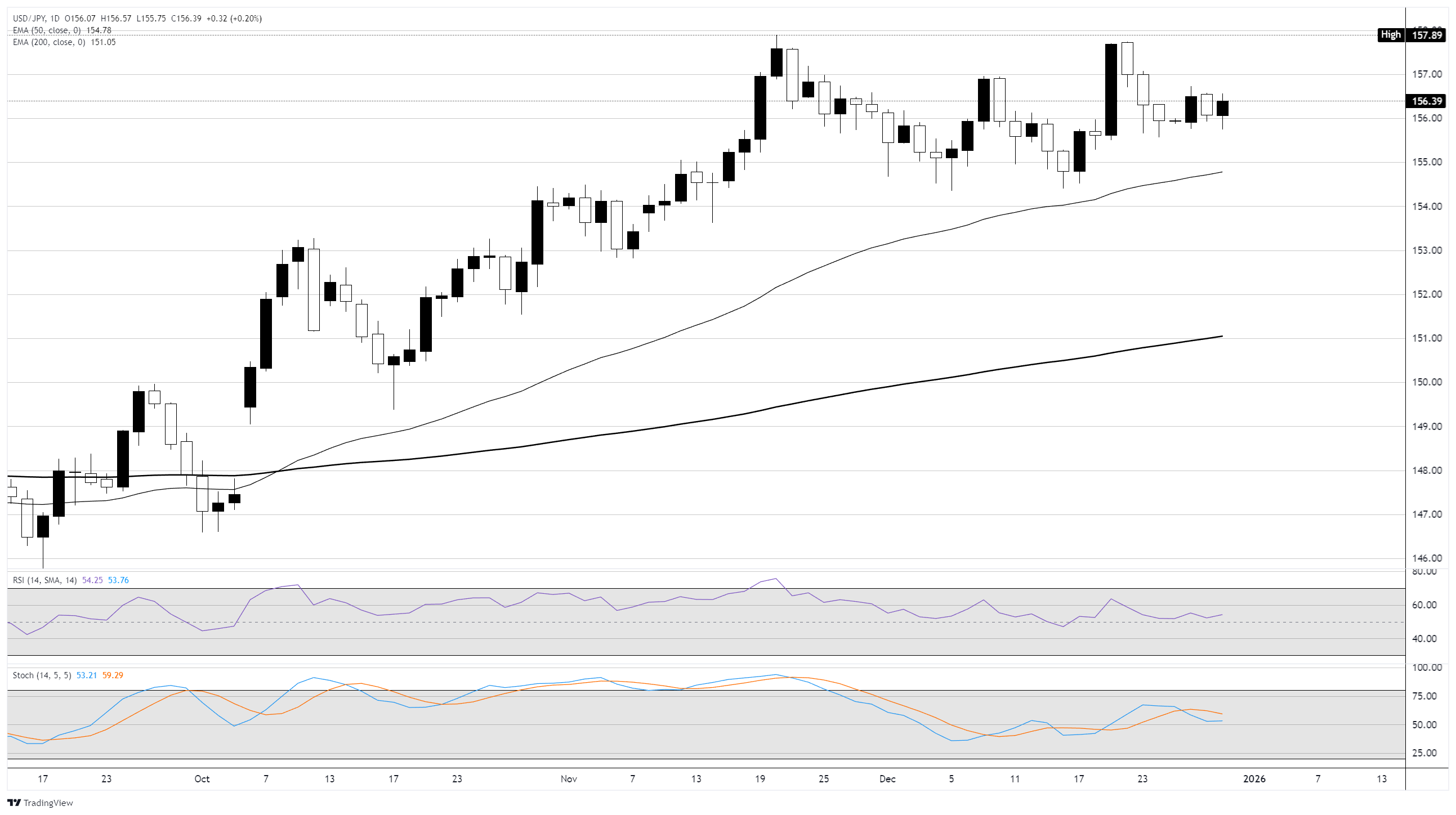 在2025年交易年的最后一周,美元/日元仍然被困在156.00关口附近的短期震盪中。日元交易者在多个方面面临阻力,日本央行(BoJ)对日元市场的困扰风险占据了很大一部分。
