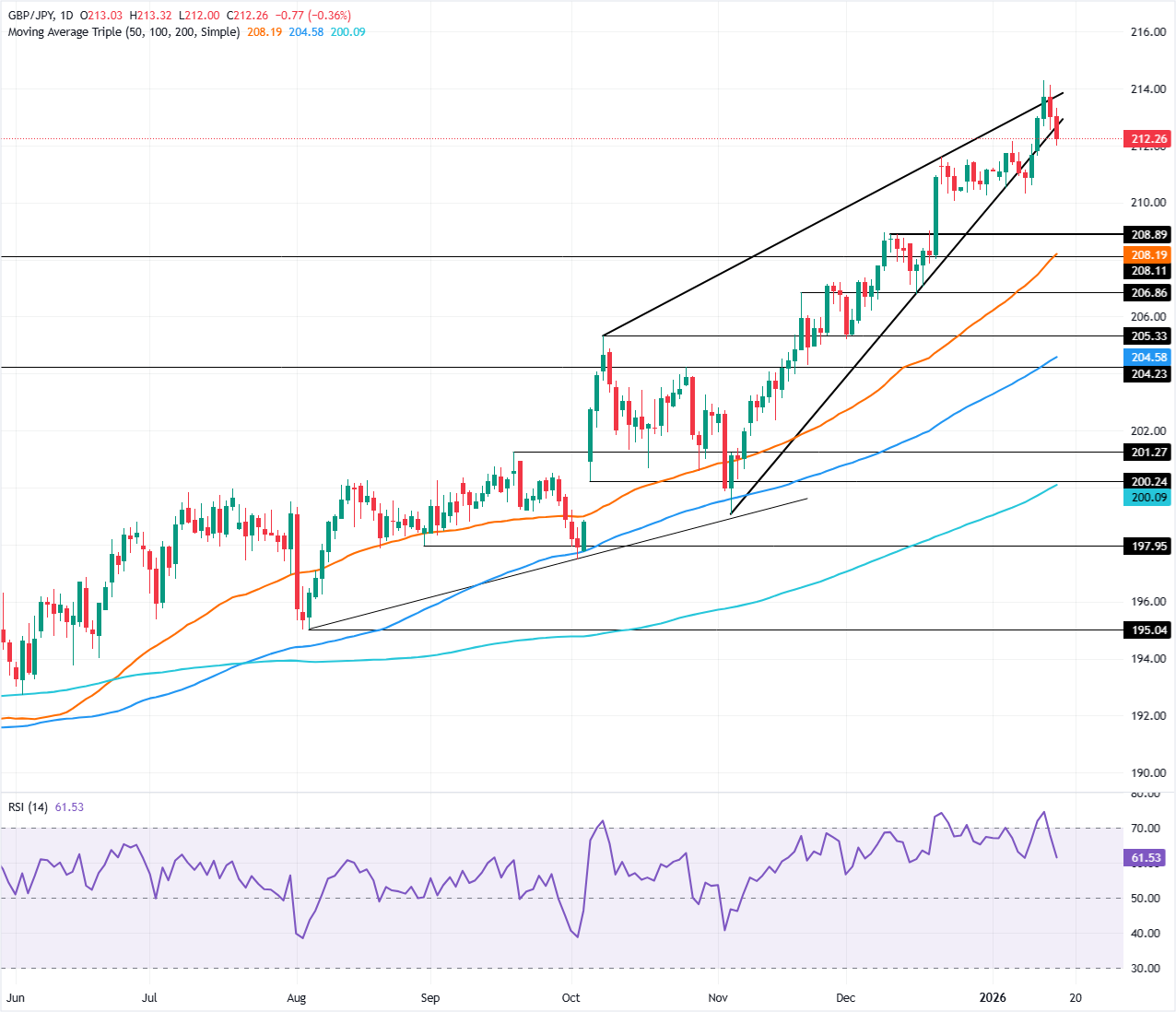 英镑/日元价格预测:从年内高点回落,朝向212.00