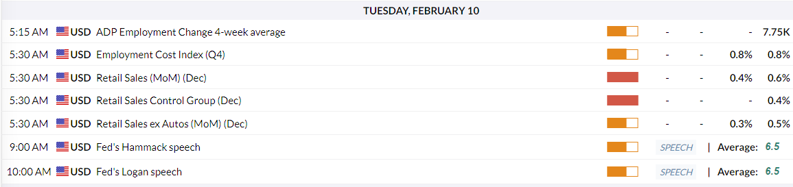 周二的交易将面临来自美国零售销售(12月)和就业成本指数(第四季度)的重大事件风险,均定于GMT05:30公布,随后是美联储(Fed)官员哈马克和洛根的讲话。日缐图上的随机振盪器(14, 5, 5)在从超𧹒状态回落后仍处于中性区域,表明如果动能增强,仍有进一步上行的空间。周二持续突破1.3700关口将目标瞄准转為阻力的破位支撑位1.3770,强劲的走势将打𫔭通往1.3870(1月波动高点)的路径。下行方面,弱于预期的美国数据可能最初会支撑英镑,但零售销售的意外强劲或鹰派的美联储评论可能会推动重新测试上周印刷的1.3590低点,50日EMA附近的深层支撑位在1.3507。1.3690-1.3700区域是短期的支点;价格在进入美国数据发布时如何反应将為本周其馀时间设定基调。