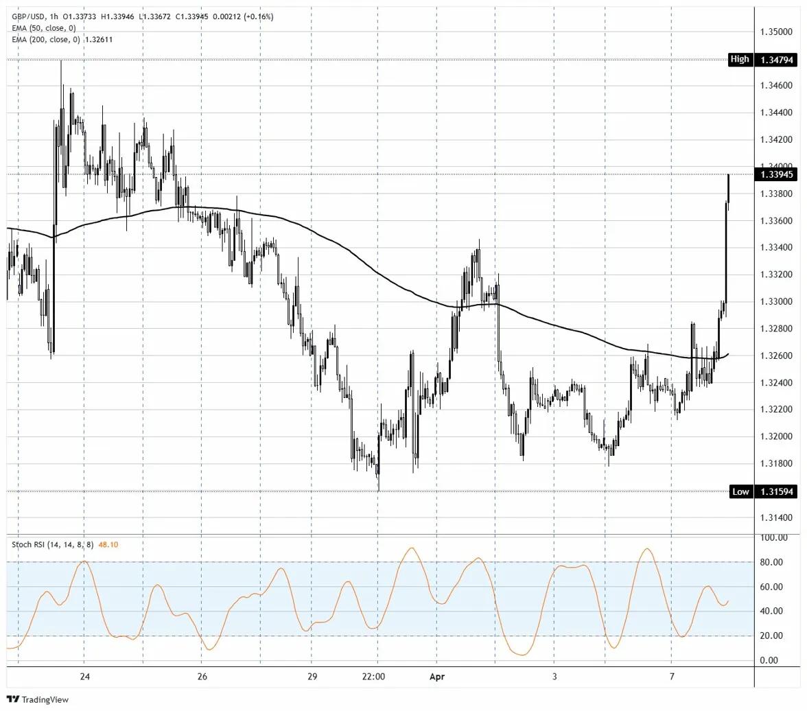 英镑/美元飙升至1.3400附近,因伊朗停火令美元走弱